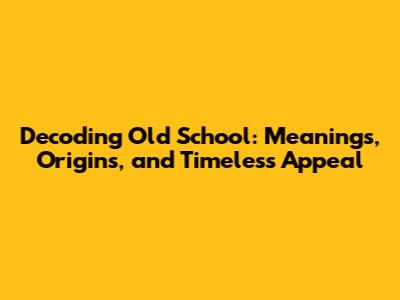 Decoding 'Old School': Meanings, Origins, And Timeless Appeal